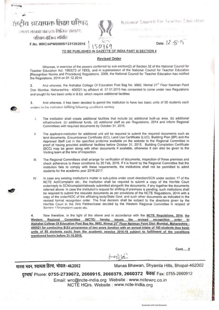 NCTE Revised Sanction Order